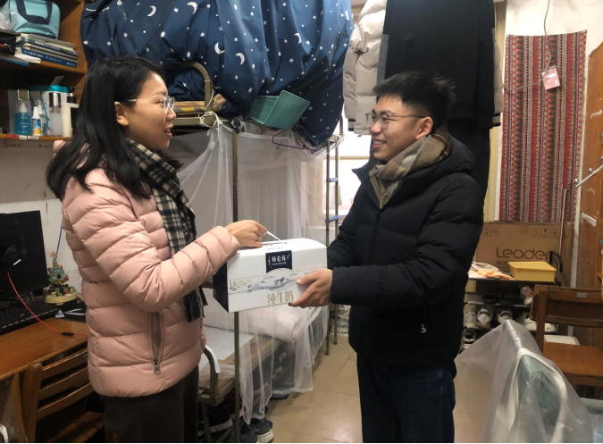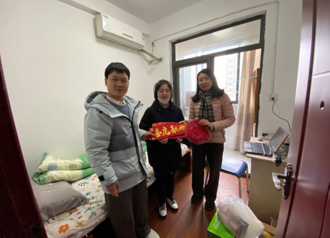 学院党委副书记李瑶曦、辅导员张耀强深入学生宿舍,慰问留校学生,并在走访过程中认真查看了留校学生的生活环境以及宿舍安全等,详细询问了留校学生家乡的疫情形势和在校学习、生活情况,嘱咐学生要合理安排假期的科研学习和日常生活,配合学校做好疫情防控工作,保持与家长、老师的联系。随后送上学院精心准备的新春礼包,祝愿留校学生度过一个温暖祥和的假期。