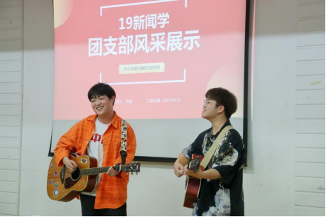新闻传播学类2001支部从支部建设、学风建设、课外实践、展望未来四个方面入手,总结团支部的丰富生活。“梦起新传,共创新篇,我们期待明天有一分热,就发一份光!”本次红旗团支部评比活动充分展现我院各团支部的团结、积极、向上的精神风貌。各团支部准备充分、创意十足。在风采展示环节,新闻学1901支部表演吉他弹唱《鼓楼》,新闻传播学类2002支部准备了展现团支部日常的情景剧小视频。