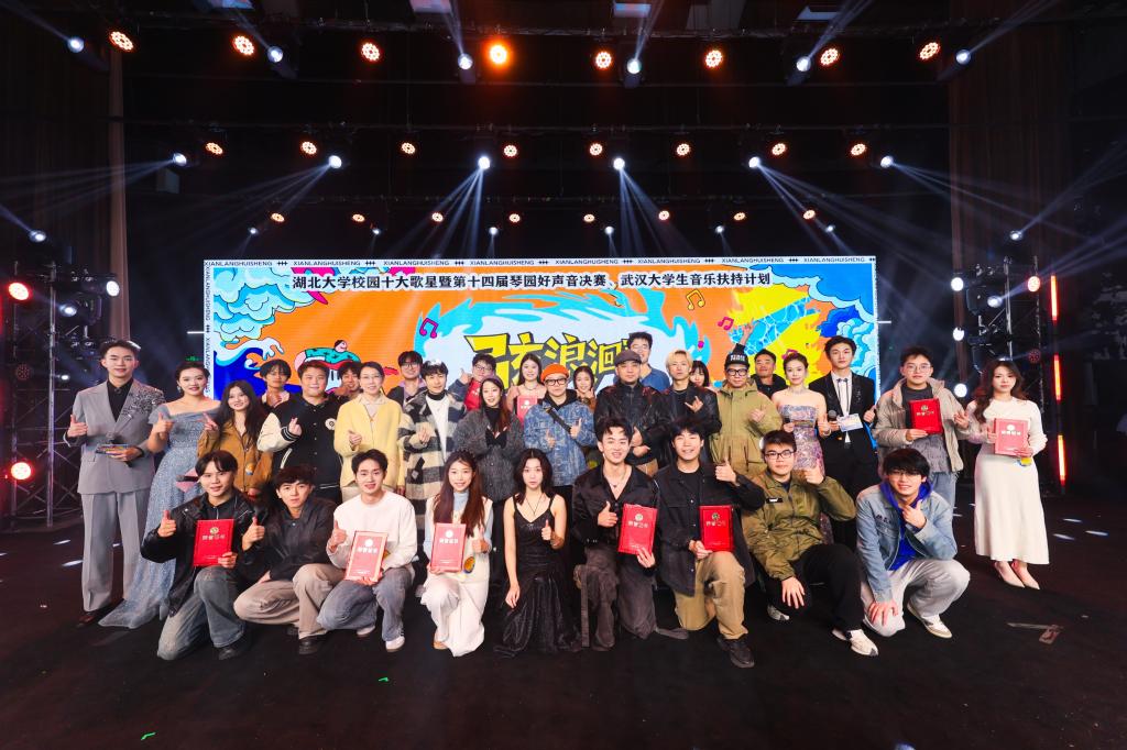 11月19日晚,湖北大学校园十大歌星暨第十四届 “琴园好声音” 评选活动在小礼堂璀璨启幕。现场灯光流转映照着青春面庞,旋律飞扬激荡着追梦热忱,从活力满格的流行金曲到情真意切的经典老歌,从高亢嘹亮的实力唱腔到细腻婉转的走心演绎,选手们轮番登台展艺,以极具感染力的表演点燃全场氛围,台下荧光棒汇成星海,欢呼声与掌声此起彼伏,为每一位逐梦歌者喝彩。经过小组赛的初露锋芒、晋级赛的强强对决、冠军赛的巅峰角逐,邱孜妍、李沛锦、周慧钰、金海、史涛维、吴翔宇、汤震远、张哲、林根莹、侯晨慧十位同学凭借扎实的演唱功底与独特的舞台魅力脱颖而出,成功斩获 “校园十大歌星” 荣誉称号。