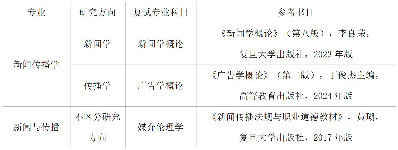 以笔试(闭卷)方式进行,主要包括新闻传播专业的理论、知识以及应用能力。考试时间120分钟。各专业笔试科目按《湖北大学2026年硕士研究生招生专业目录》执行,具体如下: