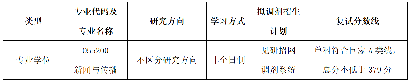3.非全日制(定向)新闻与传播(055200)专业优先考虑接收第一志愿报考本院全日制(非定向)申请调剂至非全日制 (定向) 的考生。考生自愿调入,同时须按要求提交定向单位委培函、在职证明或者劳动合同等证明材料,满足在职定向就业生的相关要求方可调剂。